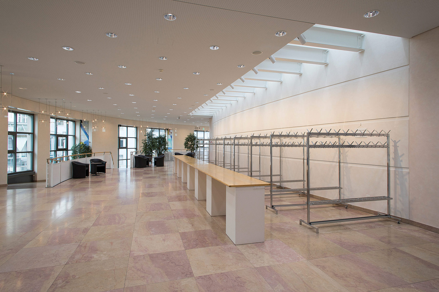 Für die Umsetzung der Lichtplanung der Spörry-Halle wurden bestehende Deckenfelder lichttechnisch überarbeitet und durch Akzentstrahler ergänzt.