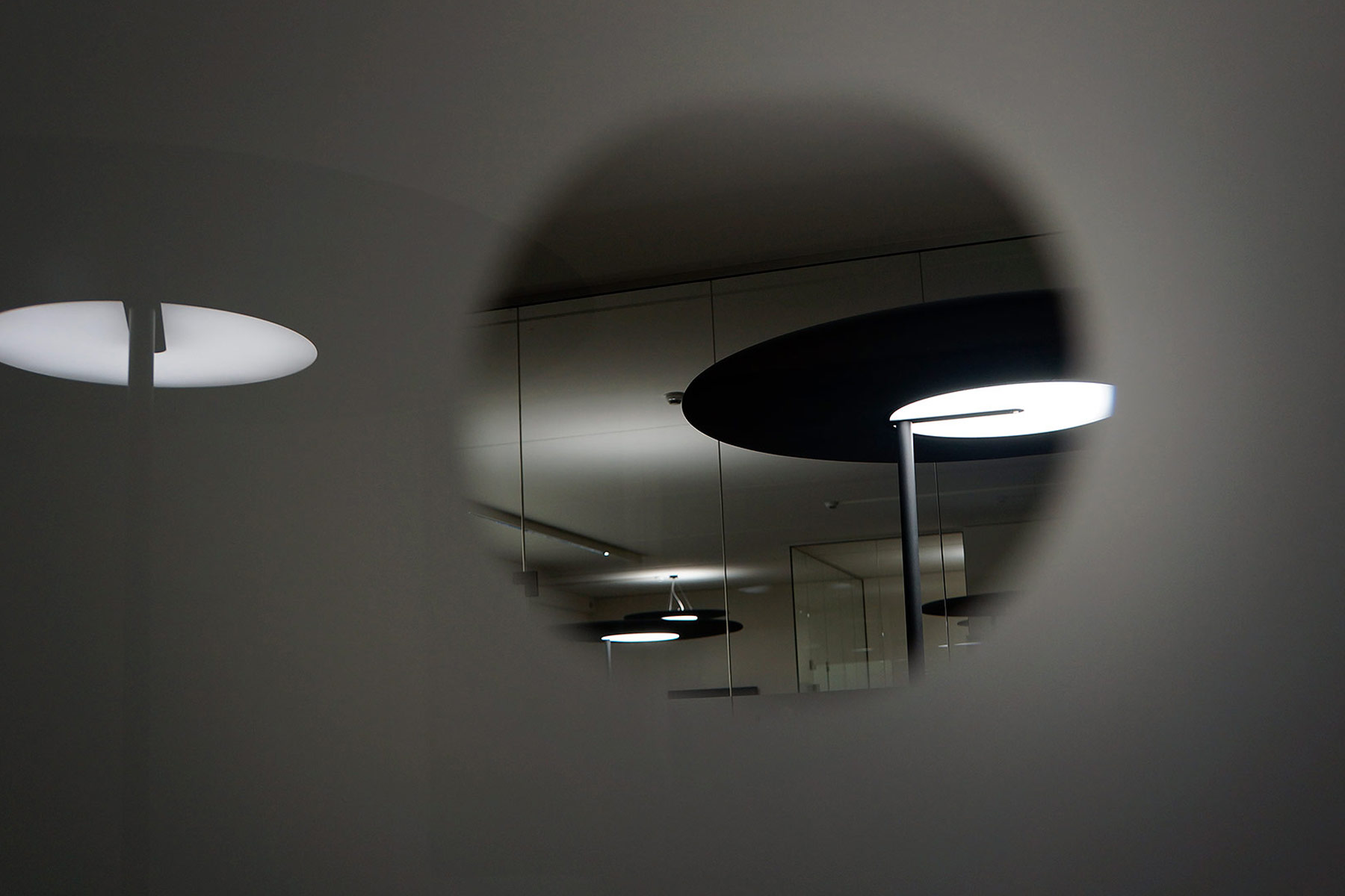 Die Lichtplanung strukturiert die Raumabfolge, die Formen- und Materialsprache der Beleuchtung unterstützt die Hierarchiestufen innerhalb der Treppenkerne.