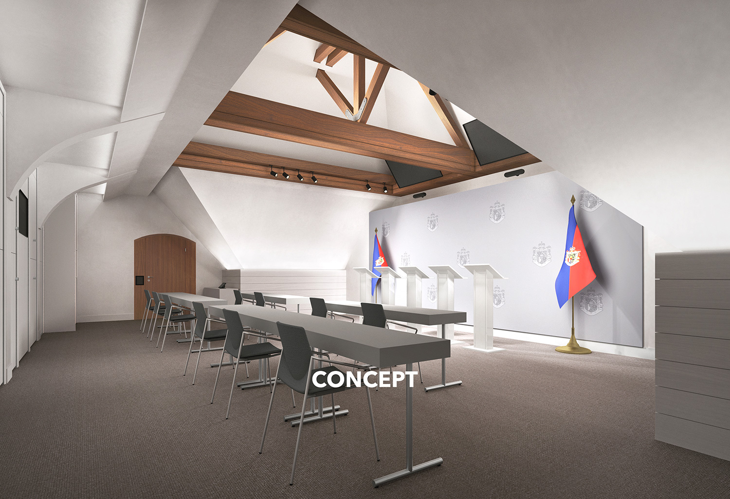 In diesem Projekt zeichnete sich lightsphere neben der Architekturbeleuchtung auch für die neue Raumgestaltung verantwortlich um den repräsentativen Charakter des Medienraumes zu stärken innerhalb der Bestandwahrung.