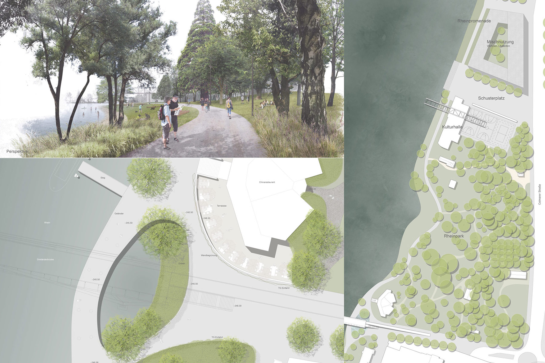 Im Wettbewerb um den Rheinpark Weil ging es nicht allein um die Sanierung und Umgestaltung des in die Jahre gekommenen Parks. Es waren auch Lösungen für eine durchgängige Rheinuferpromenande von Basel nach Weil und nicht zuletzt Ideen zur städtebaulichen Entwicklung gefragt. Die Bewertungskommission wählte aus elf Entwürfen zwei Projekte aus, die sich stark unterscheiden, aber sehr überzeugend wirken. Die beiden favorisierten Projekte wurden mit dem 2. Preis ausgezeichnet und erhalten die Gelegenheit, die Vorschläge noch zu verfeinern.